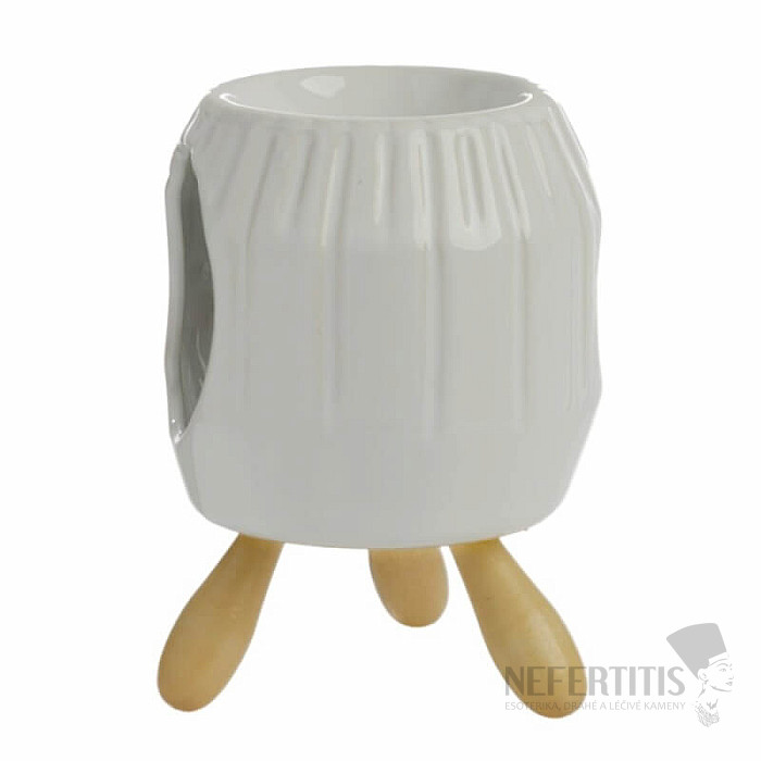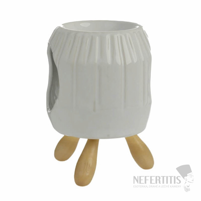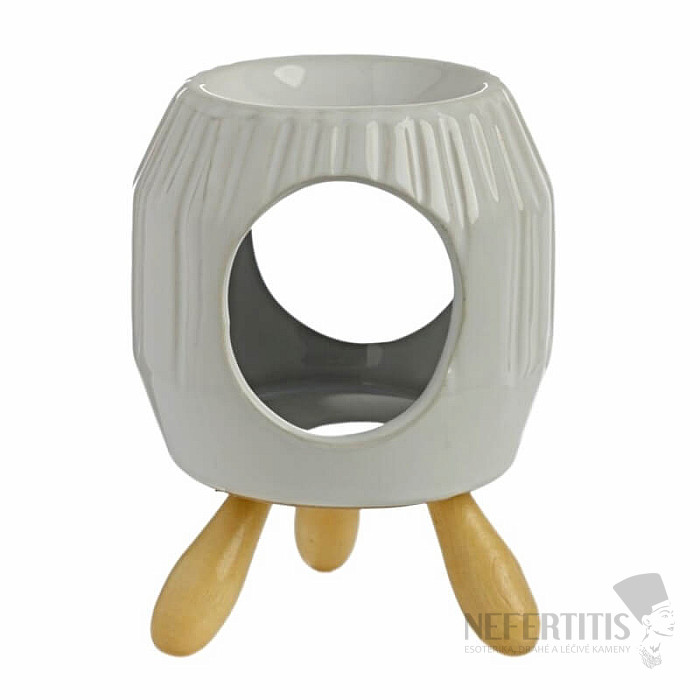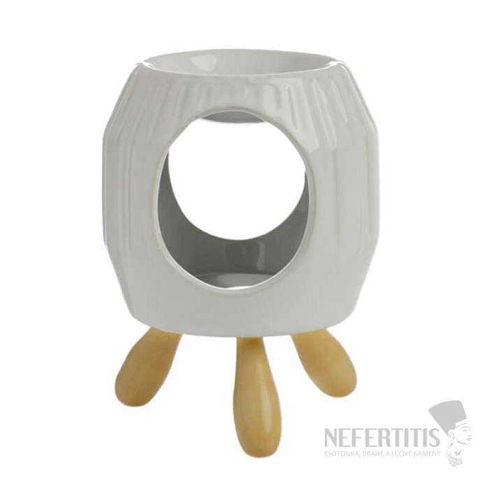 Keramická aróma lampa Biely oktagon zaujme výrazným osemhranným tvarom a jemne vrúbkovaným povrchom, ktorý dodáva dizajnu štruktúru a hĺbku. Tri stabilné nôžky lampu elegantne nadvihujú a podčiarkujú jej moderný architektonický charakter.