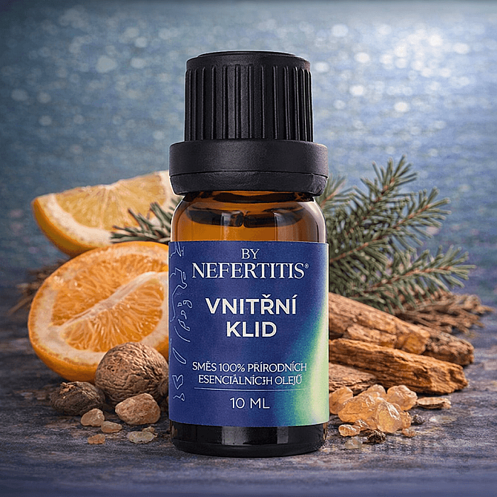 By Nefertitis Vnútorný pokoj je rituálna aromaterapeutická zmes 100% esenciálnych olejov z muškátového orieška, sladkého pomaranča a himalájskeho cédra. Vznikla ako jedinečná kompozícia v našej kúzelnej dielni By Nefertitis s cieľom vytvoriť priestor na upokojenie, uvoľnenie a návrat k vnútornej rovnováhe. Teplé korenené tóny muškátu sa prepájajú s jemnou citrusovou radosťou pomaranča a hlbokým, stabilizujúcim charakterom cédra, čím vzniká harmonická, hrejivá a upokojujúca vôňa.