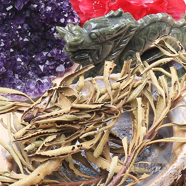 Sušené listy Yerba santa z posvätnej byliny, horského balzamu, kríky Eriodyction californicum, čeľade Brutnákovité (Boraginaceae), rastúceho v Kalifornii.Tento a Oregone. Použitie tohto vykurovadlá navodí očistnú… viac »