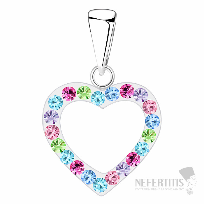 Krásny strieborný prívesok v tvare srdca s farebnými kryštálmi zaujme na prvý pohľad svojim veselým dizajnom a jemným leskom. Je vyrobený z kvalitného striebra 925/1000 a opatrený ochrannou vrstvou e-coating , ktorá chráni šperk pred oxidáciou, stratou lesku aj drobným poškodením.