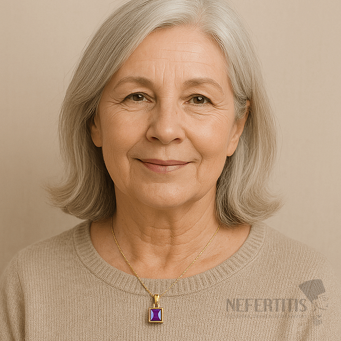 Prírodný ametyst je považovaný za kameň pokoja, ochrany a duchovnej harmonizácie. Podporuje intuíciu , rovnováhu a duševnú čistotu. Je spájaný s posilňovaním sústredenia, ochranou proti stresu as energiou, ktorá prináša vnútorný mier. Vďaka svojej výraznej fialovej farbe je tiež symbolom kreativity, elegancie a hlbokej duchovnej sily – preto je ametyst obľúbeným šperkom žien, ktoré hľadajú nielen krásu, ale aj duchovný význam.