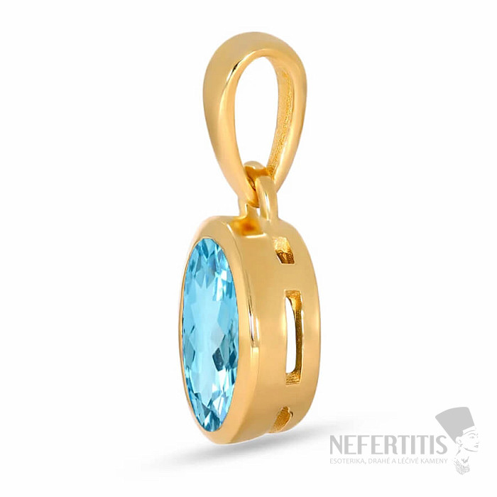 Tento elegantný šperk je vyrobený z pravého striebra 925/1000 , ktoré je potiahnuté vrstvou 14k zlata pre teplý a luxusný vzhľad. Dominantou prívesku je prírodný biely topaz o veľkosti približne 8 mm , vybrúsený do klasického oválneho tvaru s jemným facetovým brusom , ktorý podčiarkuje jeho brilantnú čírosť a iskru.