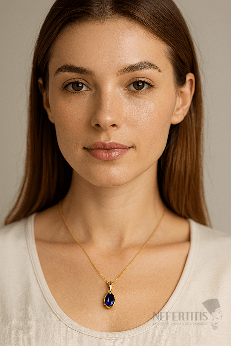 Dominantou prívesku je prírodný iolit o veľkosti približne 8 mm . Kameň je vybrúsený do oválneho tvaru a zdobený precíznym facetovým brusom , ktorý umožňuje vyniknúť jeho typickým modrofialovým odleskom. Iolit je známy svojou optickou hĺbkou a jemnými farebnými prechodmi, ktoré sa menia v závislosti od dopadu svetla.