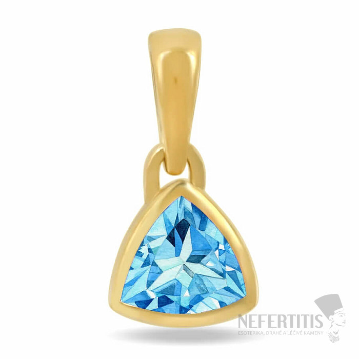 Stredobodom šperku je prírodný topaz o veľkosti približne 6 mm , vybrúsený do trojuholníkového tvaru (trillion cut) s brilantným facetovým brusom. Vďaka tomu kameň krásne iskrí a vykresľuje optickú hĺbku, ktorá je pre topaz charakteristická.