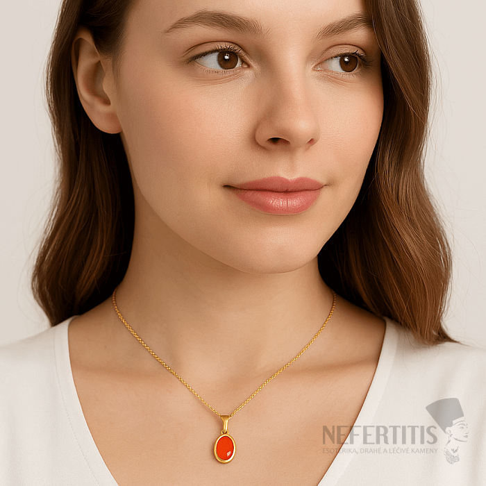 Karneol je kameňom plným energie a životnej sily - svojou farbou symbolizuje teplo, odvahu a vnútornú rovnováhu. Tento prívesok je ideálny pre ženy, ktoré chcú vyjadriť svoju vášeň, tvorivosť a sebavedomie.