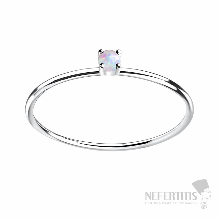 V centre prsteňa žiari opál s priemerom 2 mm , ktorého jemné dúhové odlesky pôsobia jemne a ženským dojmom. Laboratórne pestovaný opál ponúka rovnakú krásu ako prírodný kameň, ale s vyššou čistotou, odolnosťou a šetrnosťou k prírode.