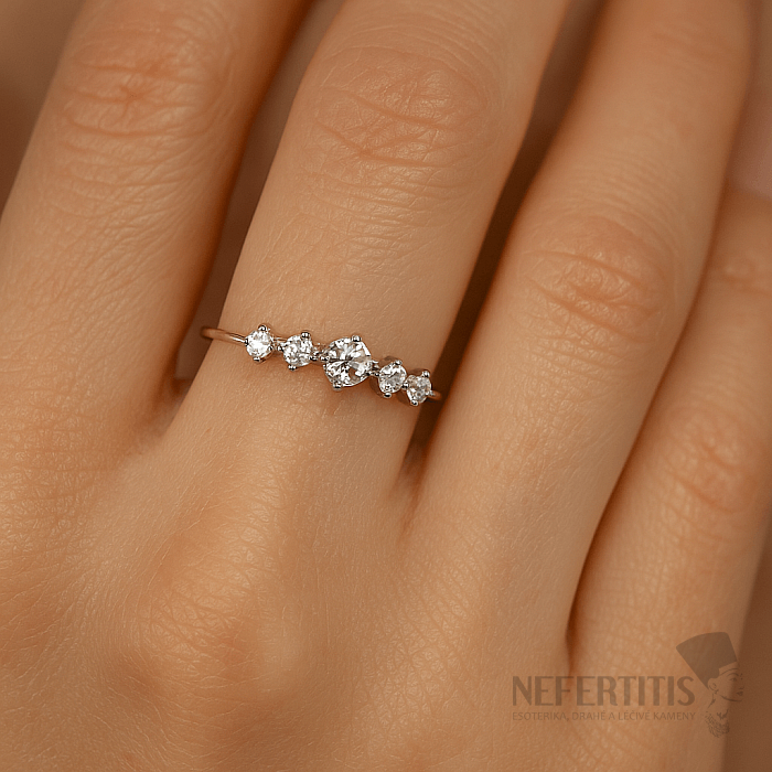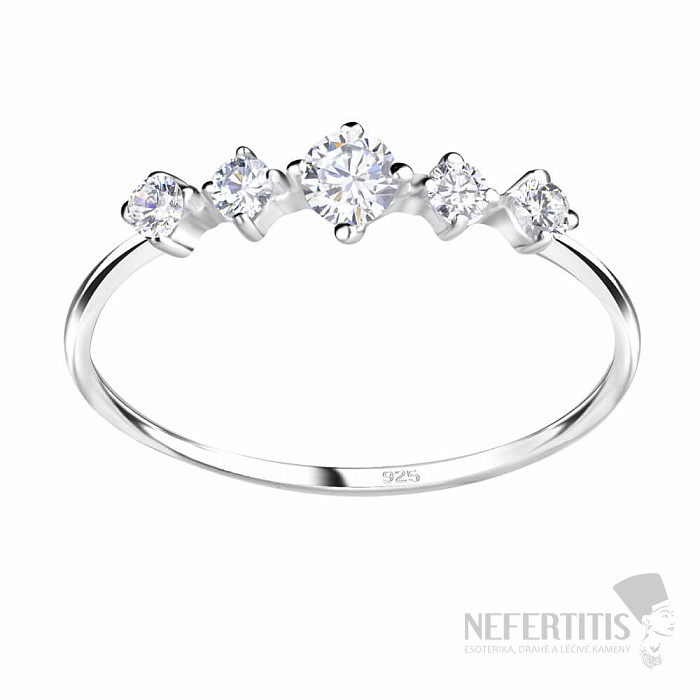 Zdobený piatimi čírymi CZ zirkónmi v briliantovom bruse (round cut)