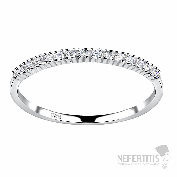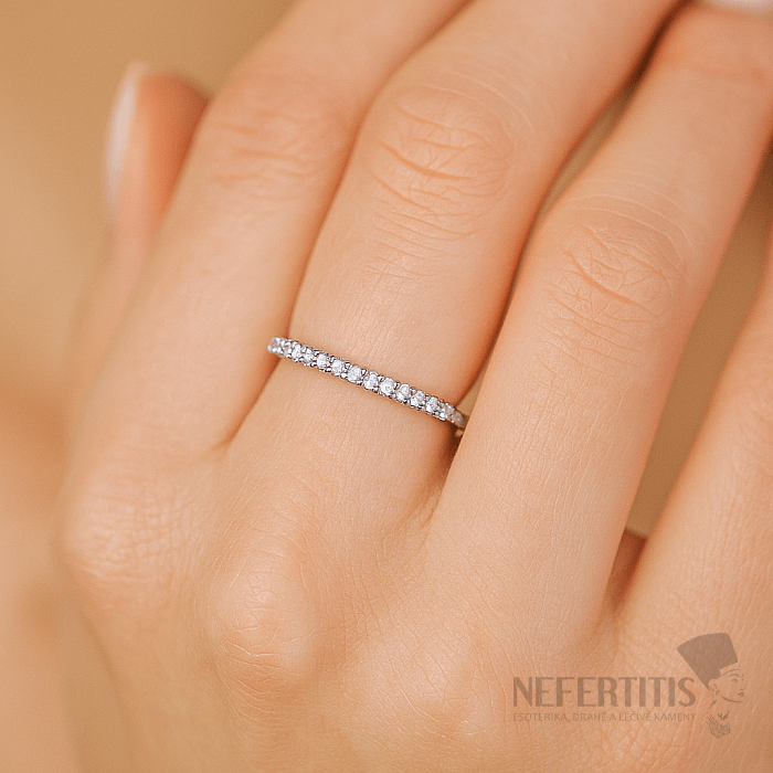 Prsteň váži 0,9 g , takže je ľahučký a príjemný na nosenie. Čisto brúsené kubické zirkóny (CZ) vytvárajú iskrivú líniu, ktorá nádherne zachytáva svetlo a dodáva šperku luxusný vzhľad. Tento typ dizajnu je často nazývaný aj eternity prsteňom - teda prsteňom večnosti , ktorý symbolizuje nekonečnú lásku, vernosť a trvalé puto .