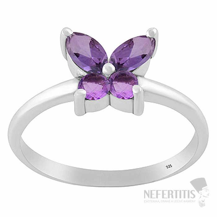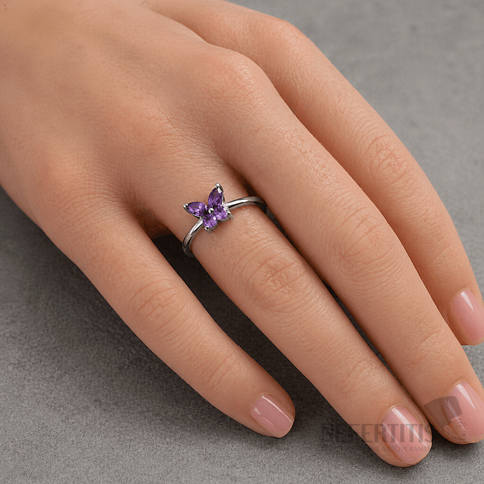 Tento strieborný prsteň s ametystom v tvare motýľa je jedinečný šperk, ktorý spája krásu prírodného kameňa s jemným a moderným designom.