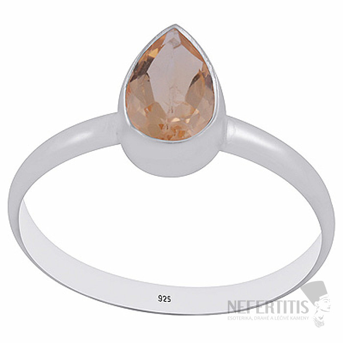 Dominantou prsteňa je prírodný citrín o veľkosti približne 8 mm, zasadený do hladkej obruby a vybrúsený do tvaru kvapky (pear) s precíznym fazetovým brusom , ktorý maximalizuje jeho ligot a jas.