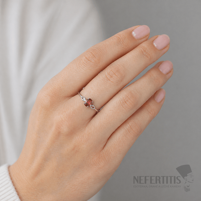 Granát vyniká svojou hlbokou červenou až vínovou farbou, ktorá pôsobí luxusne, zmyselne a veľmi elegantne. Vďaka jemnému prevedeniu je prsteň ideálny ako na každodenné nosenie, tak aj na slávnostné príležitosti.