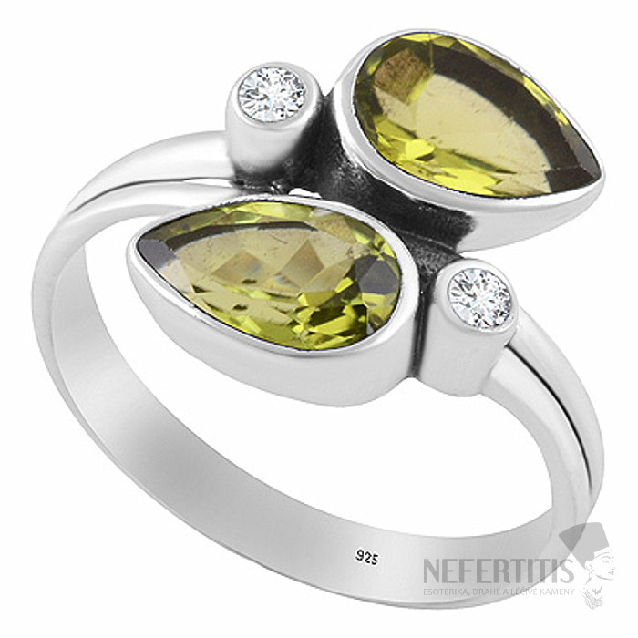 • Luxusný strieborný prsteň s olivínom a zirkónmi