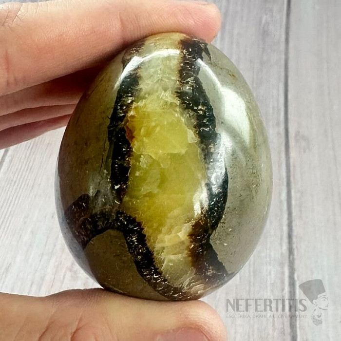 Krásne vajíčko vybrúsené zo septárie . Krajina pôvodu: Madagaskar Kupujete priamo vyobrazené vajíčko. Upozornenie: kameň nie je dokonale ohladený, nechtom sa niekedy dajú nahmatať vlasové trhlinky, čo je vlastnosťou… viac »