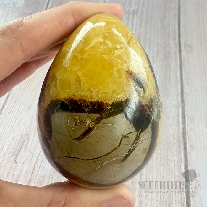 Krásne vajíčko vybrúsené zo septárie . Krajina pôvodu: Madagaskar Kupujete priamo vyobrazené vajíčko. Upozornenie: kameň nie je dokonale ohladený, nechtom sa niekedy dajú nahmatať vlasové trhlinky, čo je vlastnosťou… viac »