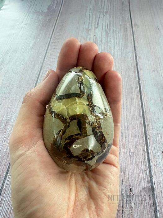 Krásne vajíčko vybrúsené zo septárie . Krajina pôvodu: Madagaskar Kupujete priamo vyobrazené vajíčko. Upozornenie: kameň nie je dokonale ohladený, nechtom sa niekedy dajú nahmatať vlasové trhlinky, čo je vlastnosťou… viac »