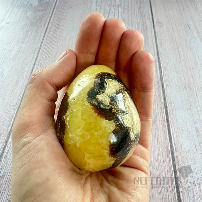Krásne vajíčko vybrúsené zo septárie . Krajina pôvodu: Madagaskar Kupujete priamo vyobrazené vajíčko. Upozornenie: kameň nie je dokonale ohladený, nechtom sa niekedy dajú nahmatať vlasové trhlinky, čo je vlastnosťou… viac »