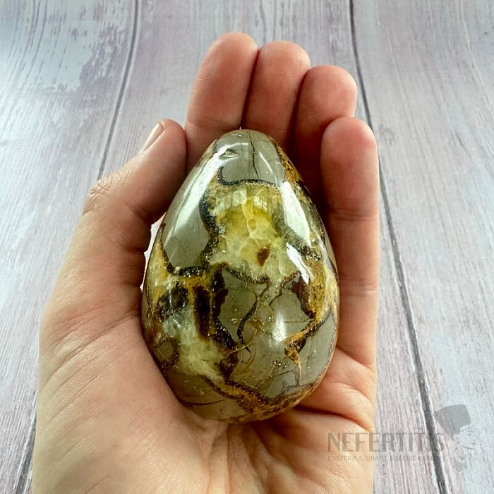 Krásne vajíčko vybrúsené zo septárie . Krajina pôvodu: Madagaskar Kupujete priamo vyobrazené vajíčko. Upozornenie: kameň nie je dokonale ohladený, nechtom sa niekedy dajú nahmatať vlasové trhlinky, čo je vlastnosťou… viac »