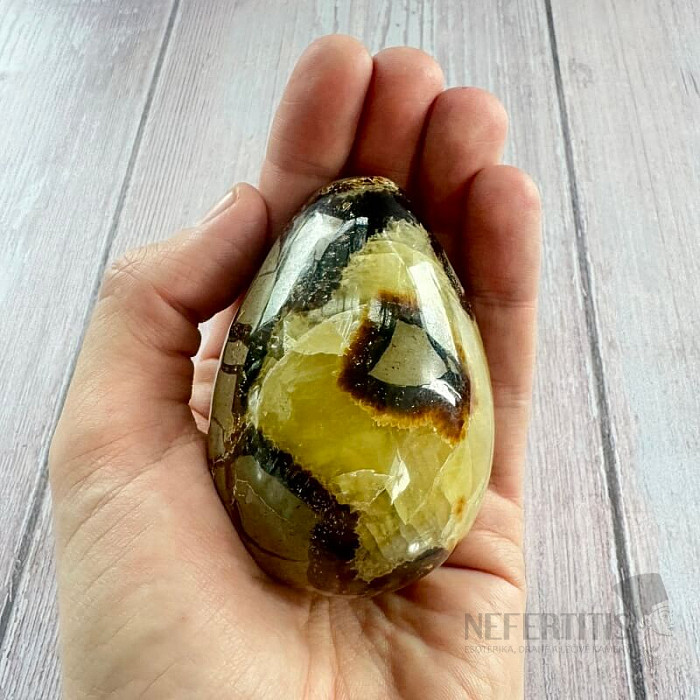 Krásne vajíčko vybrúsené zo septárie . Krajina pôvodu: Madagaskar Kupujete priamo vyobrazené vajíčko. Upozornenie: kameň nie je dokonale ohladený, nechtom sa niekedy dajú nahmatať vlasové trhlinky, čo je vlastnosťou… viac »
