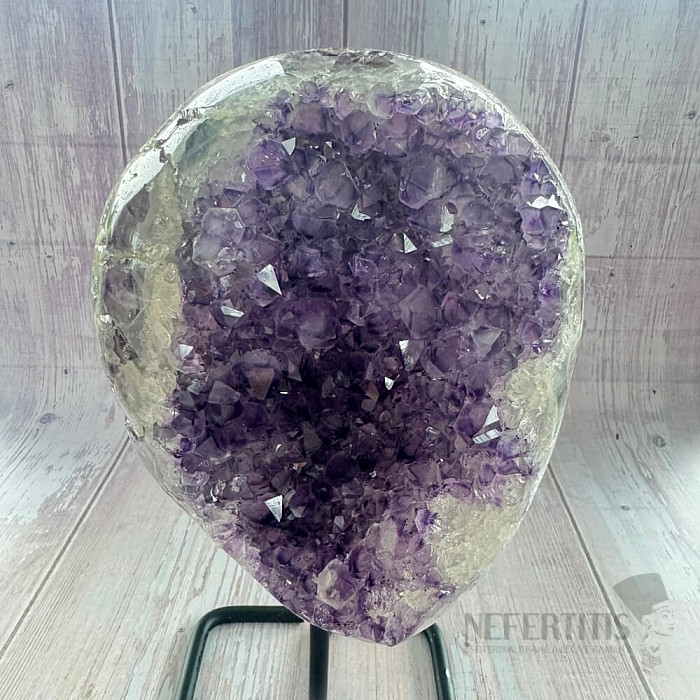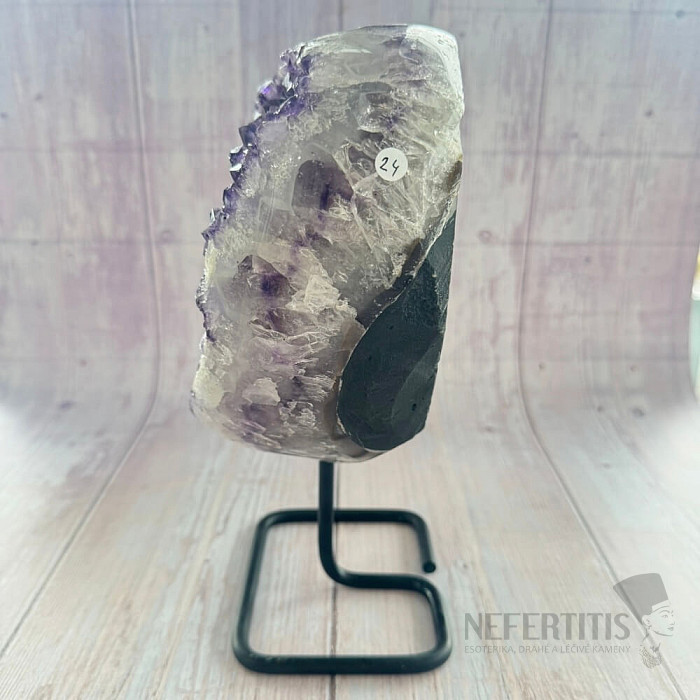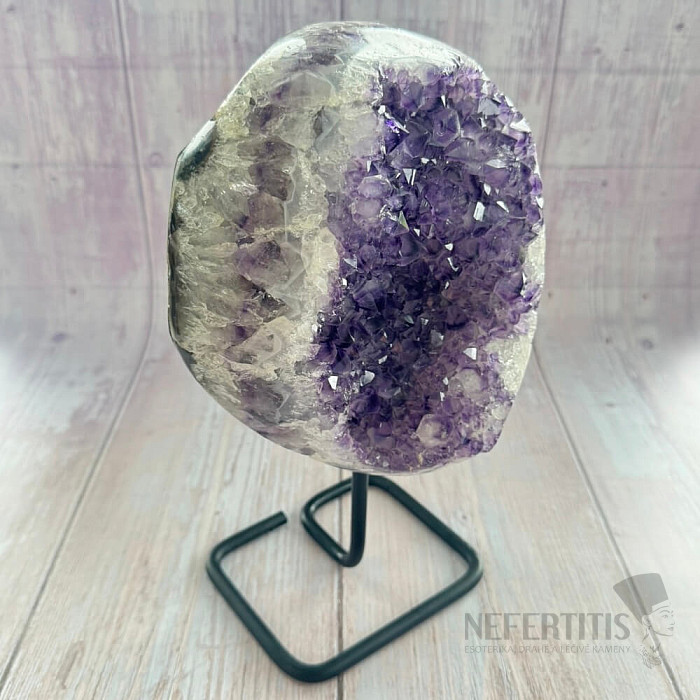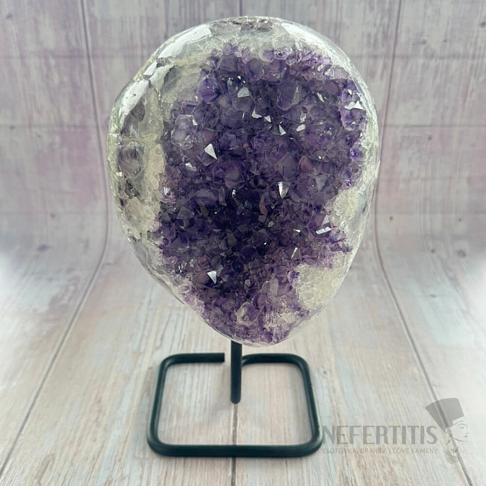 Ametystová drôza kvality A na kovovom stojane. Kupujete priamo vyobrazený kus. Stojan môže farbiť, odporúčame teda pod neho dať podložku, a neklasť ho priamo na nábytok. Krajina pôvodu: Uruguaj Ametyst je po stáročia… viac »