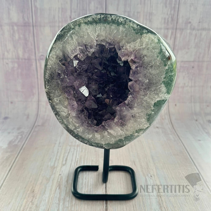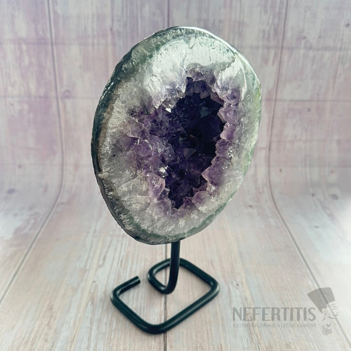 Ametystová drôza kvality A na kovovom stojane. Kupujete priamo vyobrazený kus. Stojan môže farbiť, odporúčame teda pod neho dať podložku, a neklasť ho priamo na nábytok. Krajina pôvodu: Uruguaj Ametyst je po stáročia… viac »