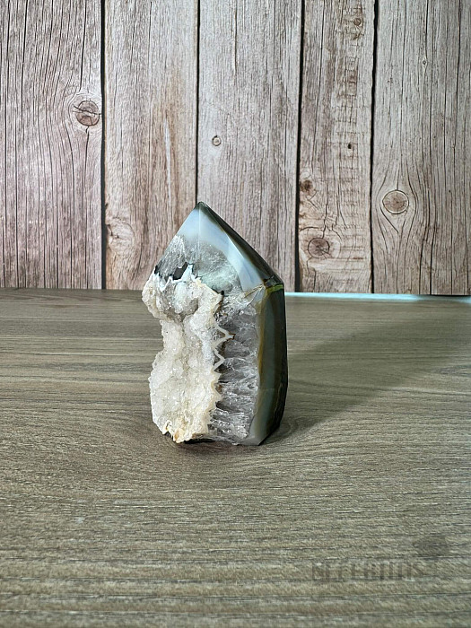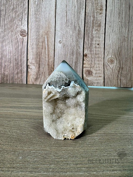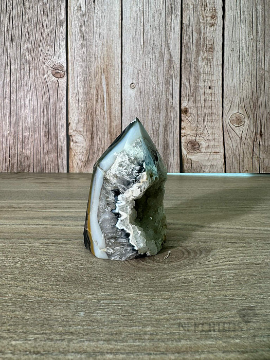Zbierková špica - obelisk z brazílskeho achátu s geodkovým okienkom. Kupujete priamo vyobrazený kus.