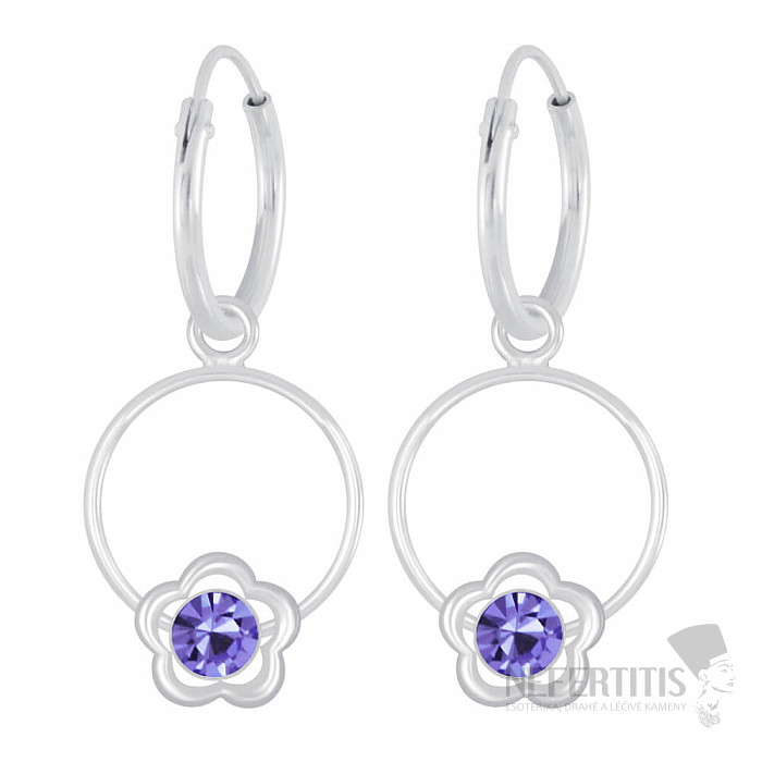 8821 Strieborné kruhové náušnice 26 mm TANZANITE FLOWER