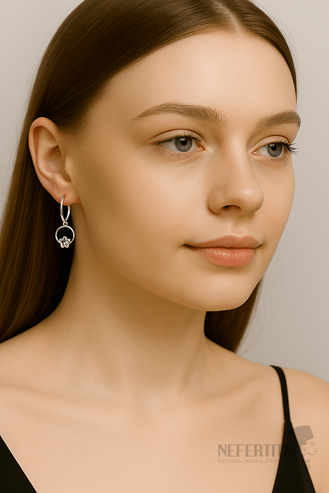 Nadčasové strieborné náušnice s dĺžkou 2,6 cm vynikajú originálnym dizajnom, ktorý tvoria dva jemné kruhy o hrúbke 1,2 mm , s príveskom v tvare kvety s kubickým zirkónom vo farbe nádherne modrého tanzanitu . Kryštály dodávajú šperku luxusný nádych a elegantný ligot , ktorý rozžiari každý outfit.