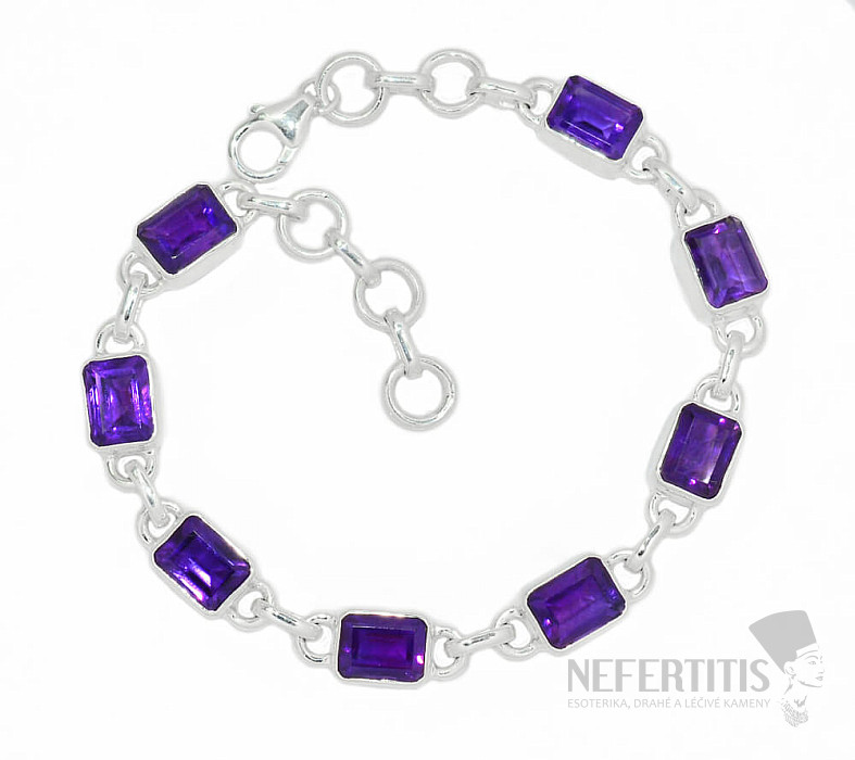 Výnimočný náramok zo striebra s krásnymi brúsenými ametystmi. Ag 925. Nesmierne elegantný šperk, ktorý každého očarí a nikto ho na vašej ruke neprehliadne. Kupujete priamo vyobrazený šperk.