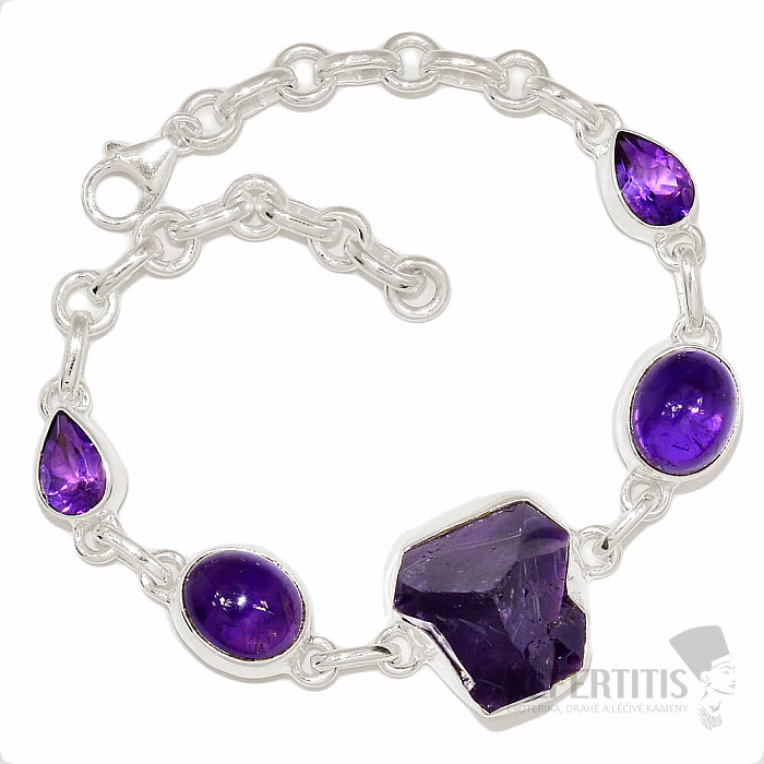 Veľkosť náramku: dĺžka náramku je cca 16 cm, je možné zapnúť až na 19,5 cm. Veľkosť ametystov je cca 0,9 – 1,6 cm.