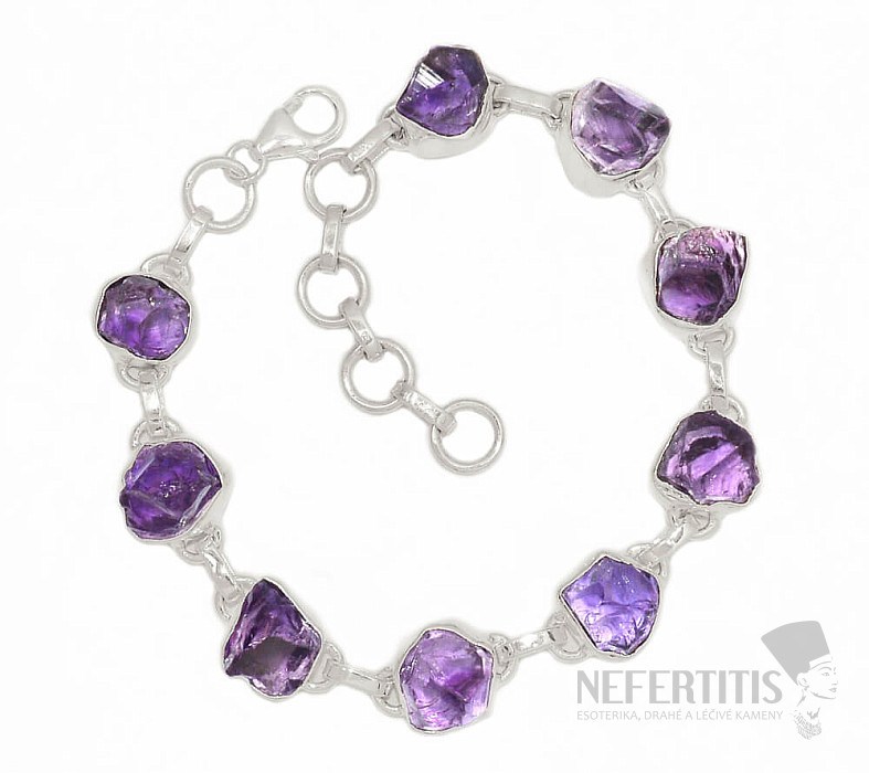 Veľkosť náramku: dĺžka náramku je cca 18 cm, je možné zapnúť až na 21 cm. Veľkosť ametystov je cca 0,9 – 1,1 cm.