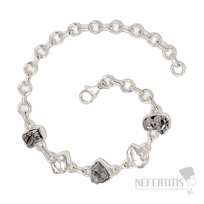 Herkimer diamant a meteorit náramok striebro Ag 925 B321