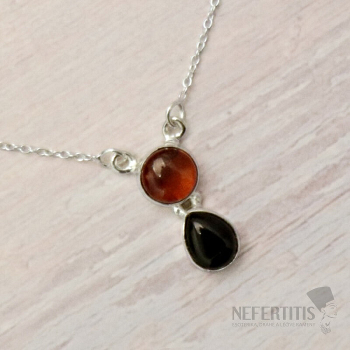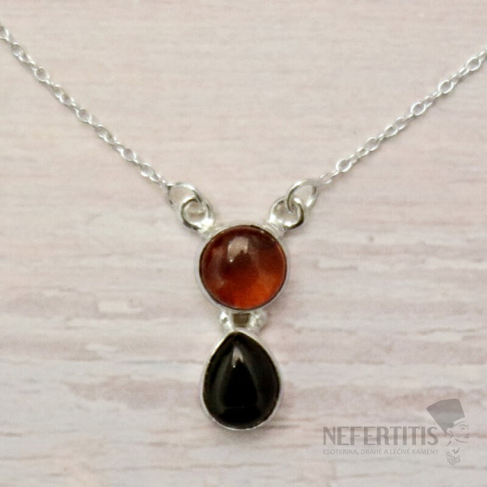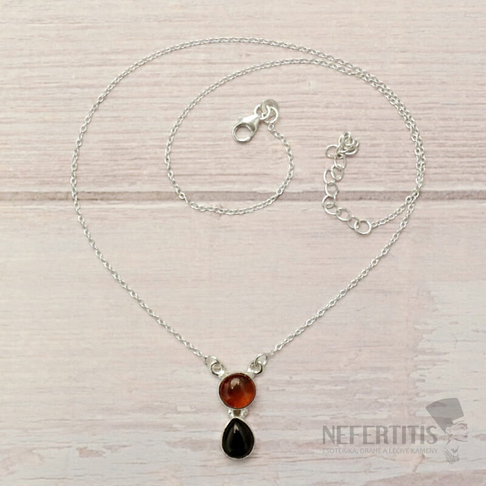 Unikátny strieborný náhrdelník s kabošonom baltského jantáru a onyxu. Veľmi optimistický a dobrú náladu už od pohľadu dávajúci šperk. Ag 925. Kupujete priamo vyobrazený šperk.