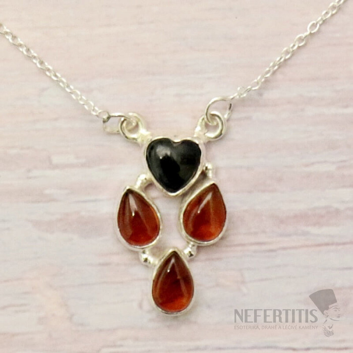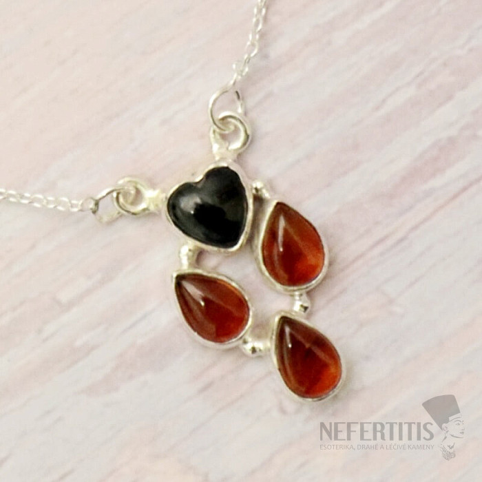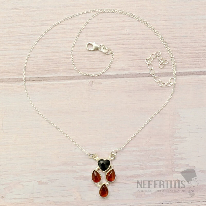 Unikátny strieborný náhrdelník s kabošonmi baltského jantáru a onyxom. Veľmi optimistický a dobrú náladu už od pohľadu dávajúci šperk. Ag 925. Kupujete priamo vyobrazený šperk.