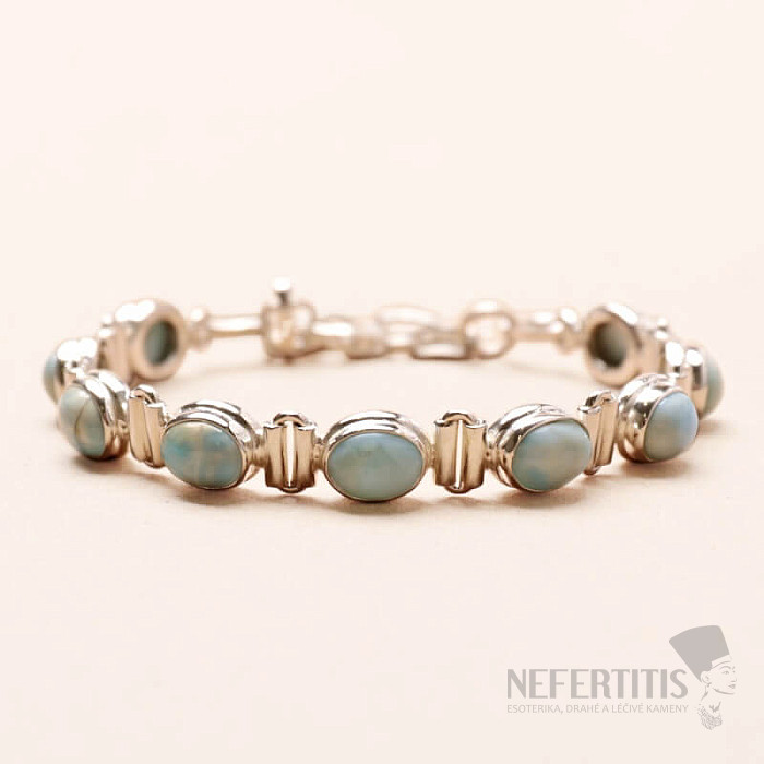 Výnimočný náramok zo striebra s kabošonmi vzácneho larimaru . Výrazný šperk, ktorý každého očarí a nikto ho na vašej ruke neprehliadne. Ag 925. Kupujete priamo vyobrazený šperk.