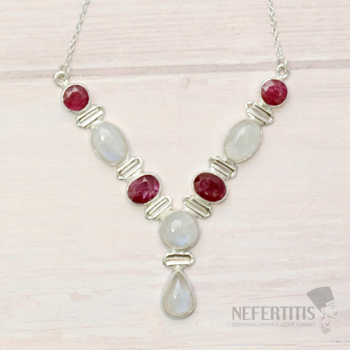 Strieborný náhrdelník s kabošonmi mesačného kameňa .