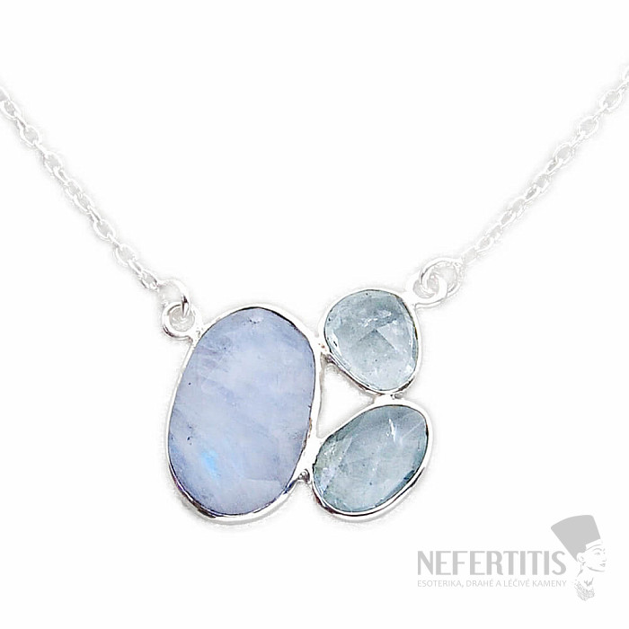 Strieborný náhrdelník s brúseným mesačným kameňom a akvamaríny. Ag 925. Kupujete priamo vyobrazený šperk.