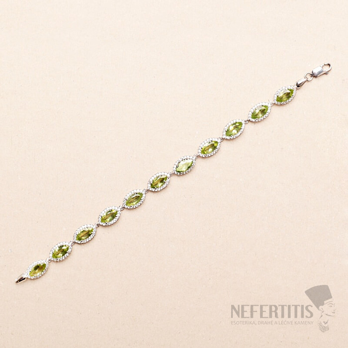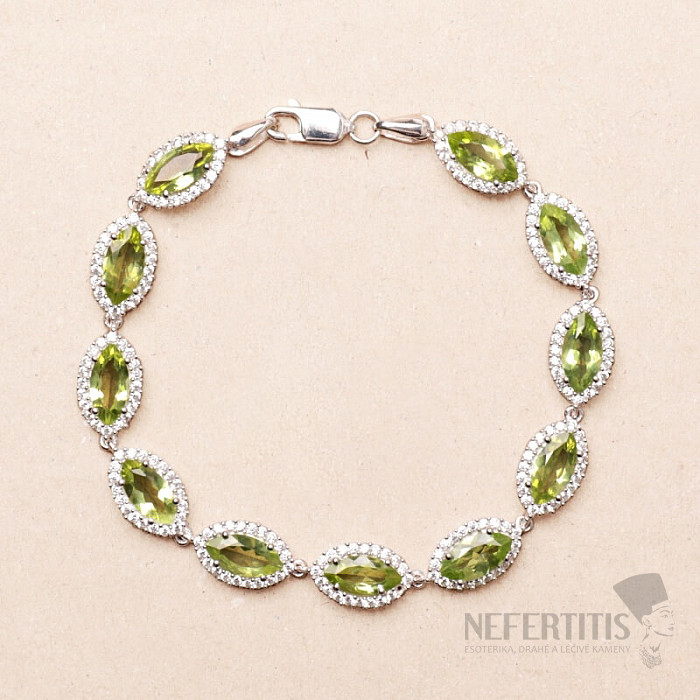 Výnimočný náramok zo striebra s brúsenými olivínmi a zirkónmi. Výrazný šperk, ktorý každého očarí a nikto ho na vás neprehliadne. Ag 925. Kupujete priamo vyobrazený šperk.