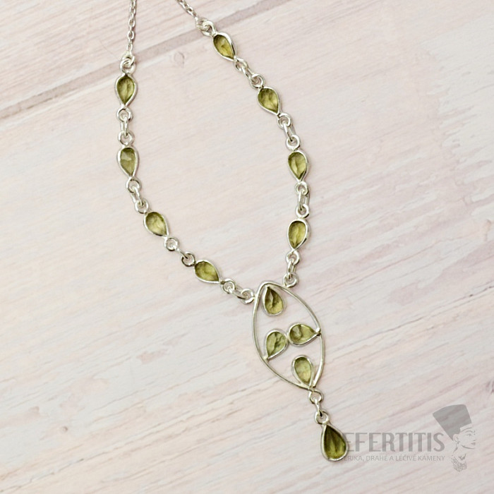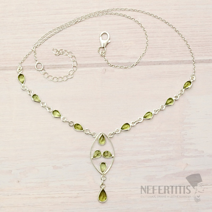 Olivín brúsený náhrdelník striebro Ag 925 74890