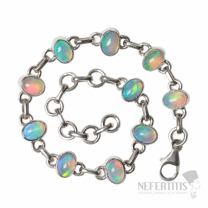 Nádherný a elegantný náramok s etiópskymi opálmi. Ag 925. Pôsobivý a elegantný šperk, od pohľadu navodzujúci radosť a pocity harmónie. Etiópske opály oproti austrálskym opálom doslova hýria až neónovo žiarivými odleskami farieb. Hoci na prvý pohľad na to nevyzerajú, ohňostroj farieb, ktorý z opálov v tomto náramku vytryskne pri každom pohybe vašej ruky, očarí nielen vás, ale celé vaše okolie. Kupujete priamo vyobrazený šperk.