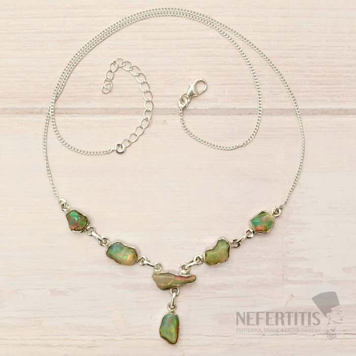 Opál etiópsky surový náhrdelník striebro Ag 925 N88