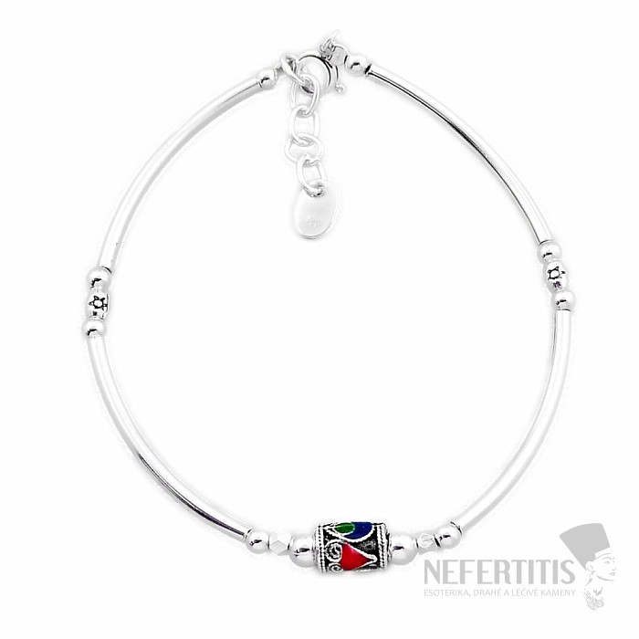 Strieborný náramok so smaltom. Ag 925. Veľkosť: dĺžka náramku je cca 18 cm, je možné zapnúť až na 19,5 cm. Veľkosť smaltovej korálky 0,5 x 0,7 cm.