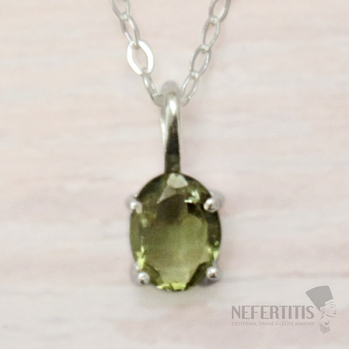 Atraktívny strieborný náhrdelník s brúseným vltavínom. Ag 925. Kupujete priamo vyobrazený šperk.