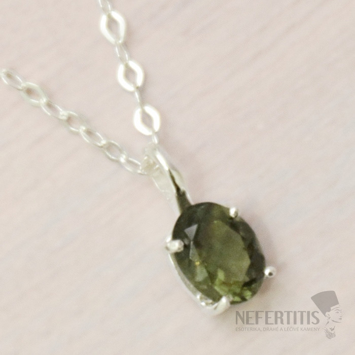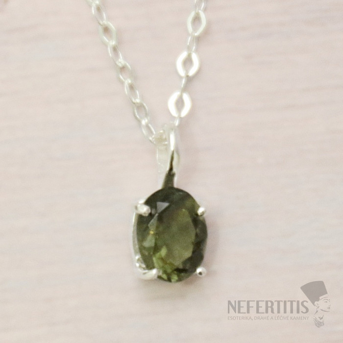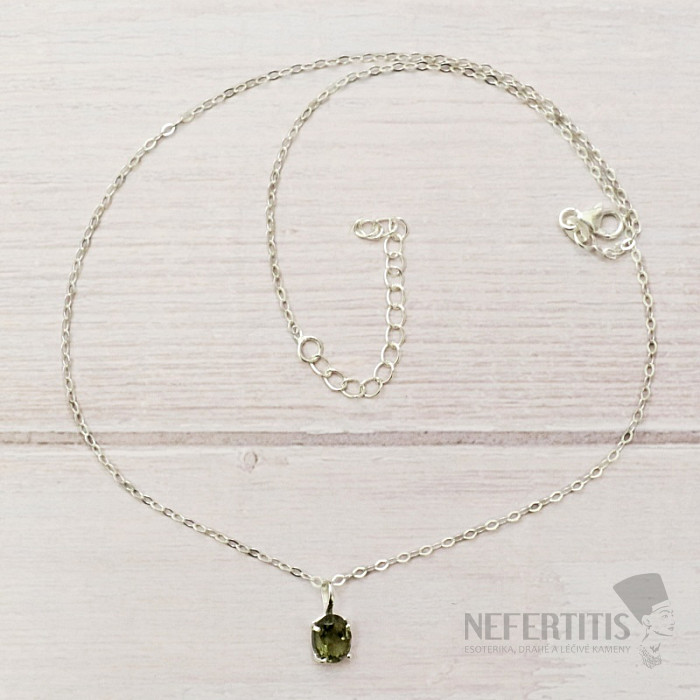 Atraktívny strieborný náhrdelník s brúseným vltavínom. Ag 925. Kupujete priamo vyobrazený šperk.