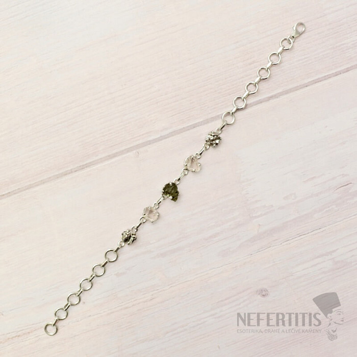 Vltavín, Herkimer diamant a meteorit Campo del Cielo náramok striebro Ag 925 LOT32