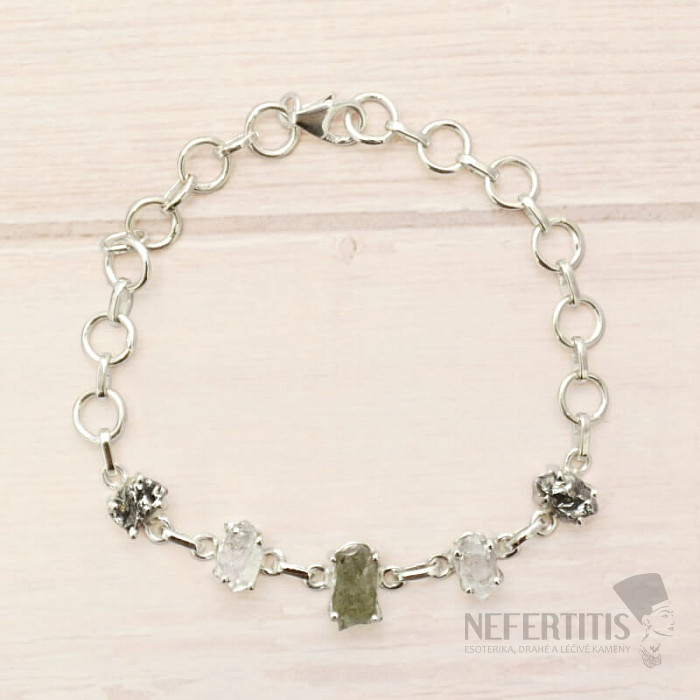 Vltavín, Herkimer diamant a meteorit Campo del Cielo náramok striebro Ag 925 LOT40
