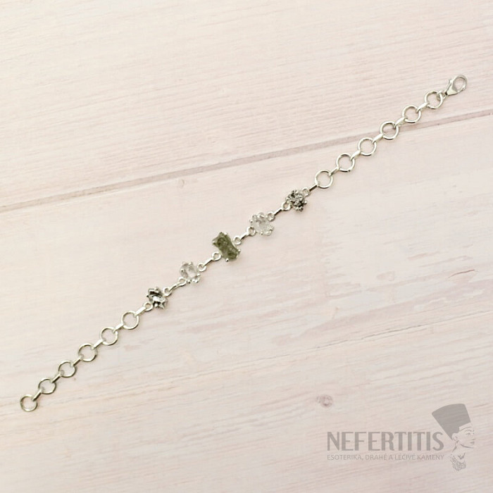 Atraktívny strieborný náramok s vltavíny, Herkimer diamanty a meteority Campo del Cielo. Ag 925. Kupujete priamo vyobrazený šperk. Veľkosť náramku: dĺžka cca 14,5 cm, je možné dopnúť až na 19,5 cm. Veľkosť vltavínu cca… viac »