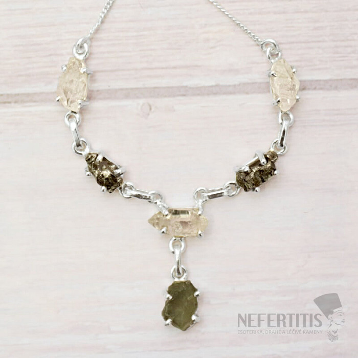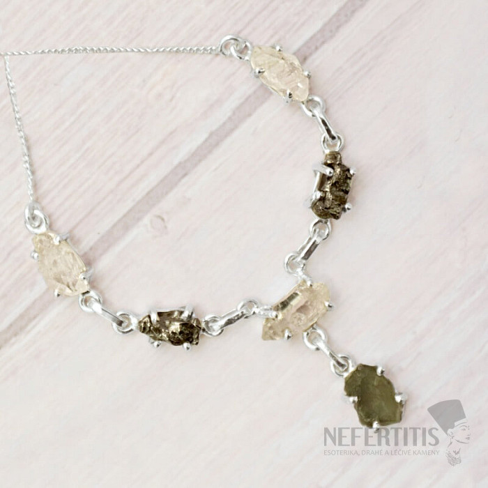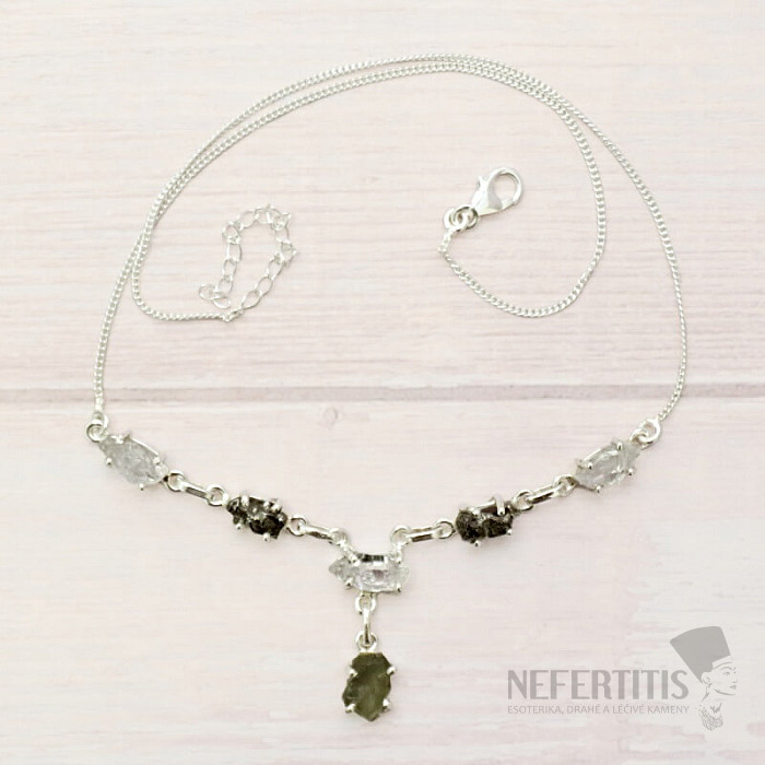 Vltavín, Herkimer diamant a meteorit náhrdelník striebro Ag 925 LOT33