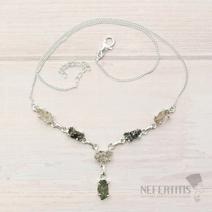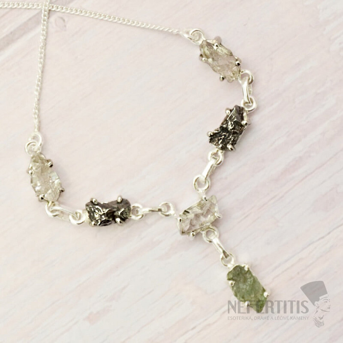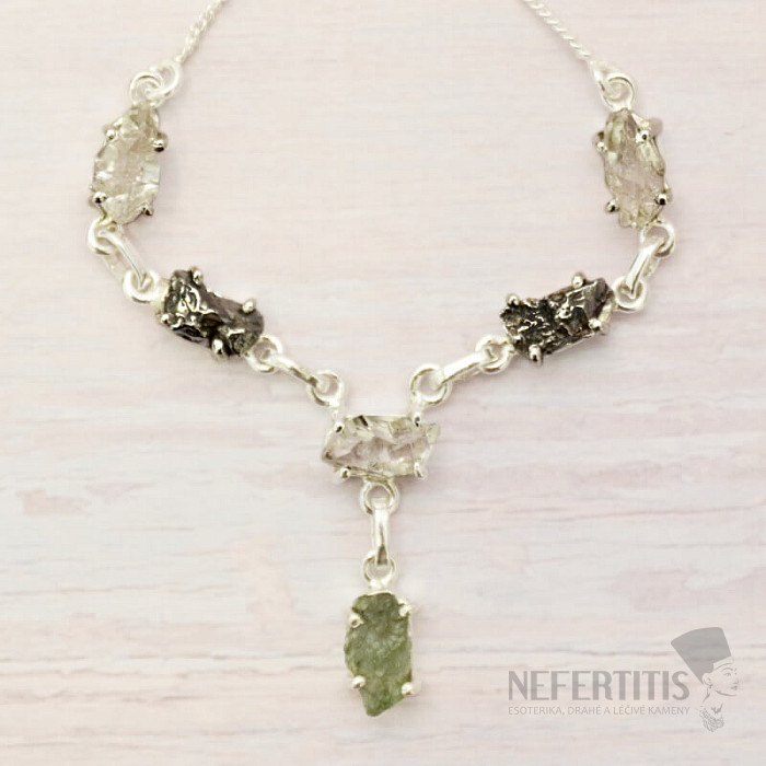 Vltavín, Herkimer diamant a meteorit náhrdelník striebro Ag 925 LOT35