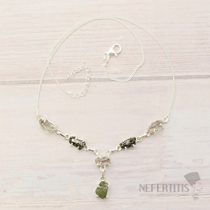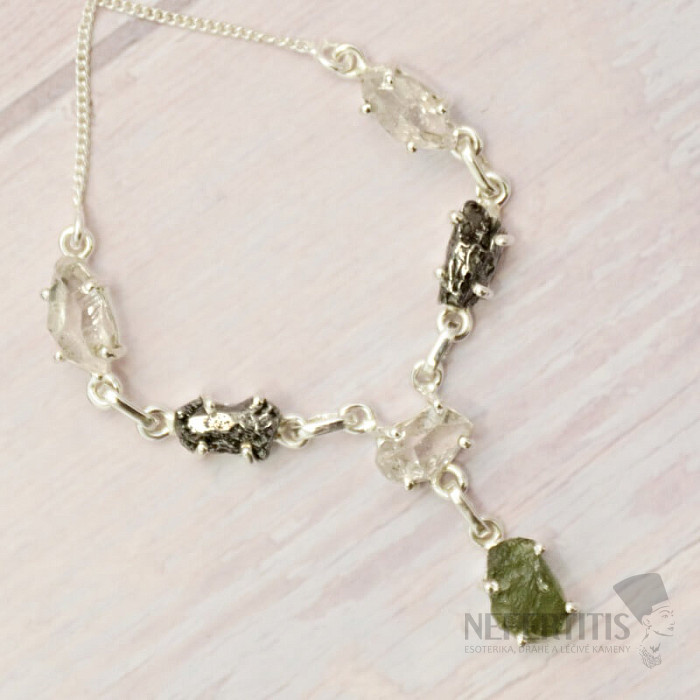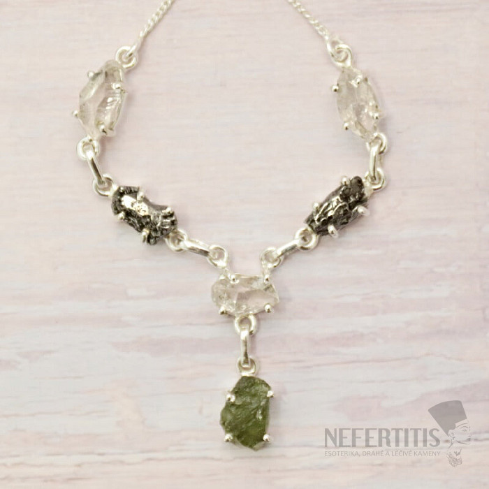 Vltavín, Herkimer diamant a meteorit náhrdelník striebro Ag 925 LOT36
