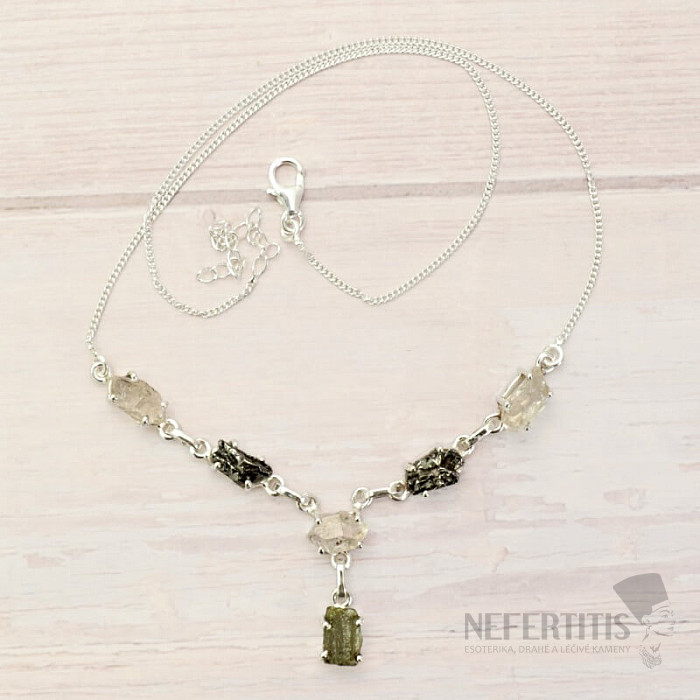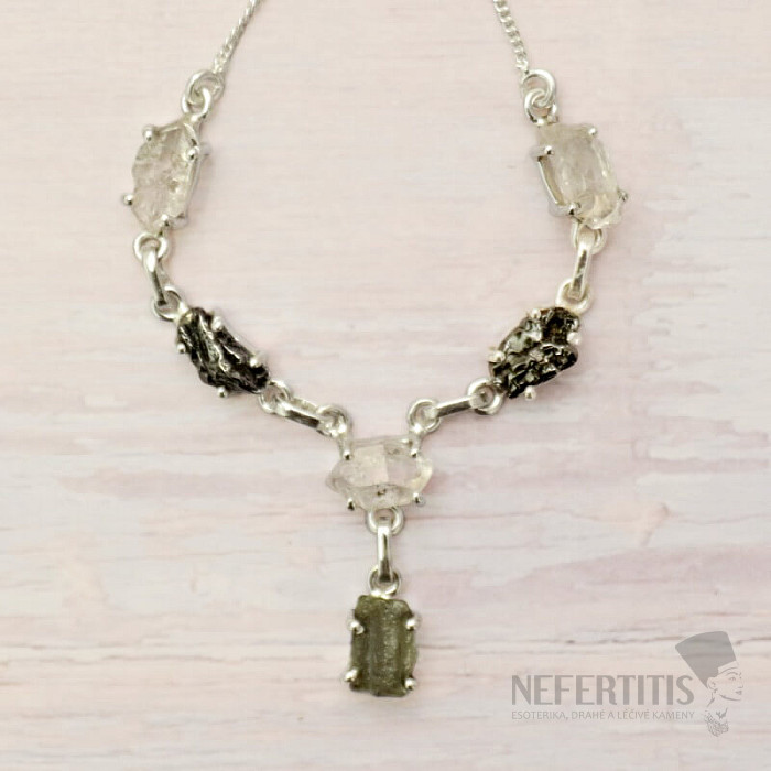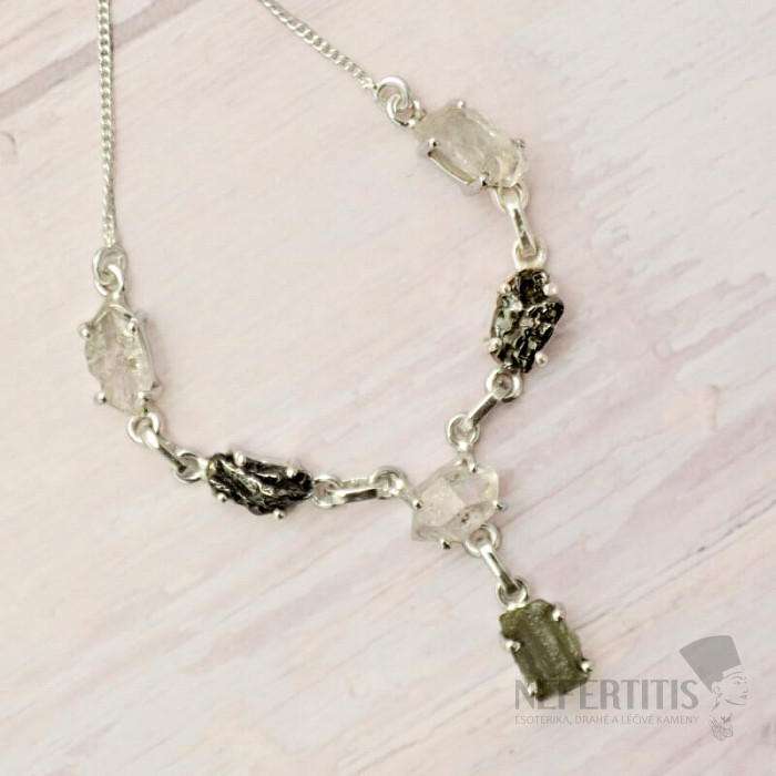 Vltavín, Herkimer diamant a meteorit náhrdelník striebro Ag 925 LOT38
